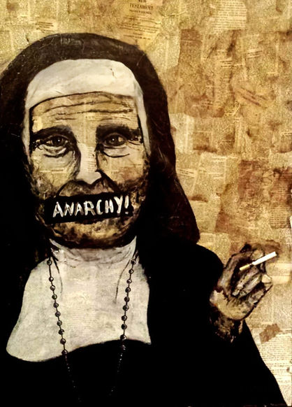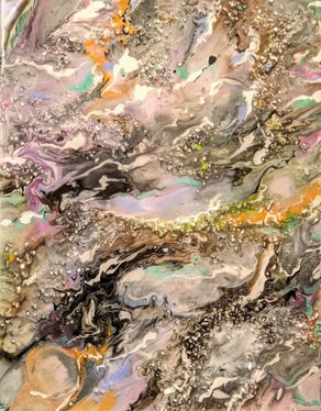 Mixed media. Pieces that encompass collage, found objects, photos, or various mediums, like acrylic paint, ink, oil paint, and various other art materials.