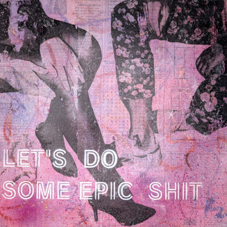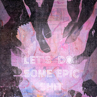 On reclaimed wood, financial news paper articles act as a moody background for highlighter, spray paint, and washes, building up to graphics on vellum highlighting internal struggles and decisions surrounding who we are and what we value. Trippy and bright text canvas cutouts bringing poignant messages - not to be lost in the impersonable background like the rest of our woes... Oh, and don't forget the cute, marketable signs... Like your morals, they too are of course available for a price.